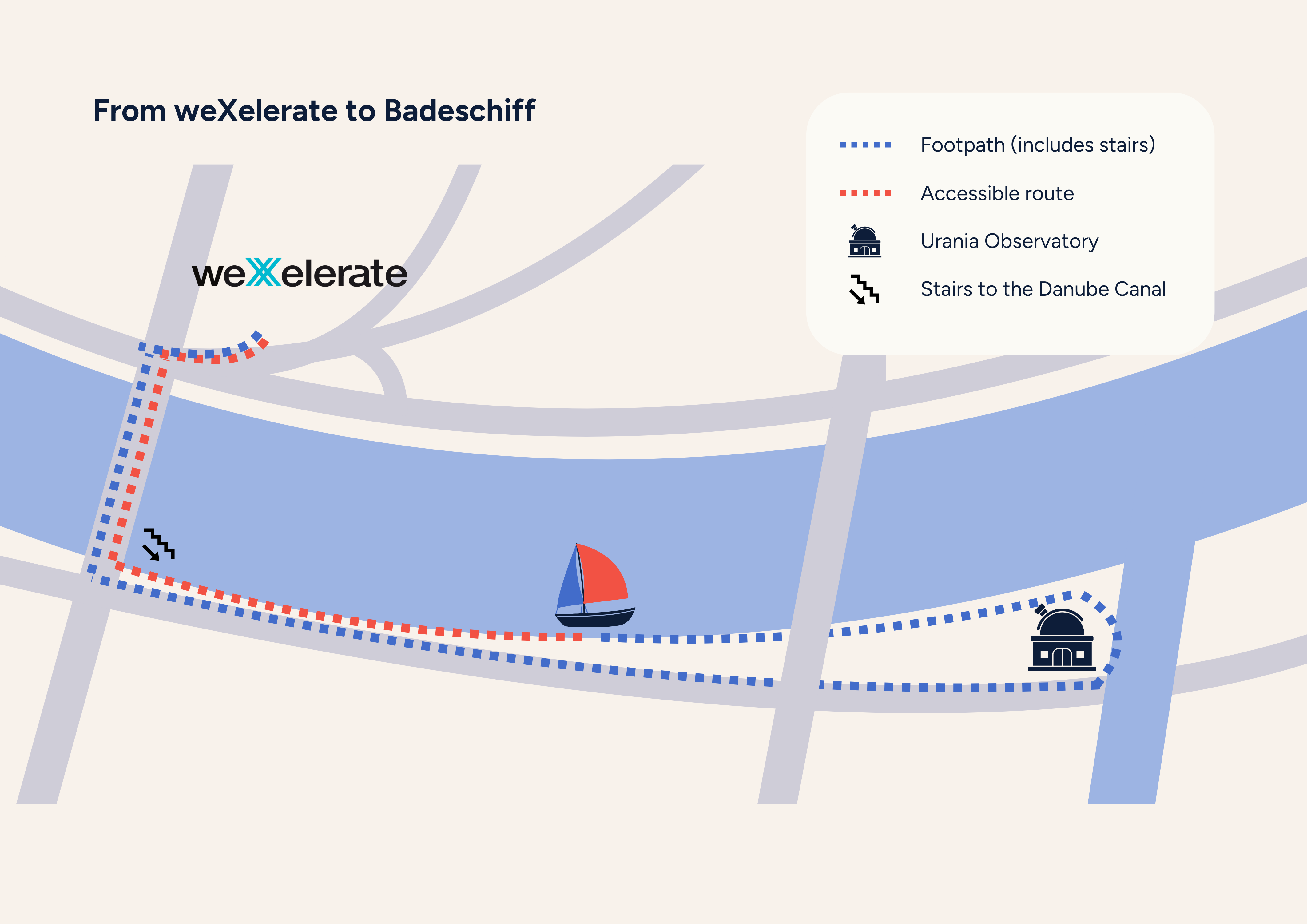 Wheelchair friendly: Accessible route from weXelerate to the Badeschiff